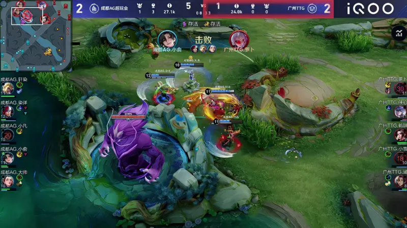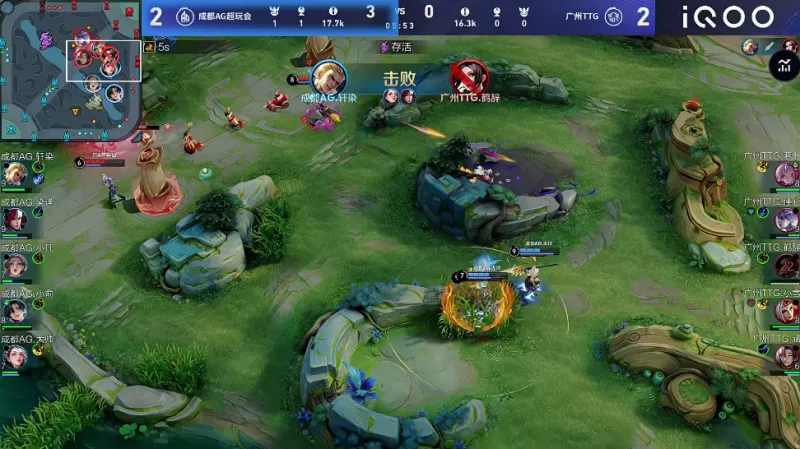 不知火舞率先发难闪现开团,后续爆发团战AG打出1换2